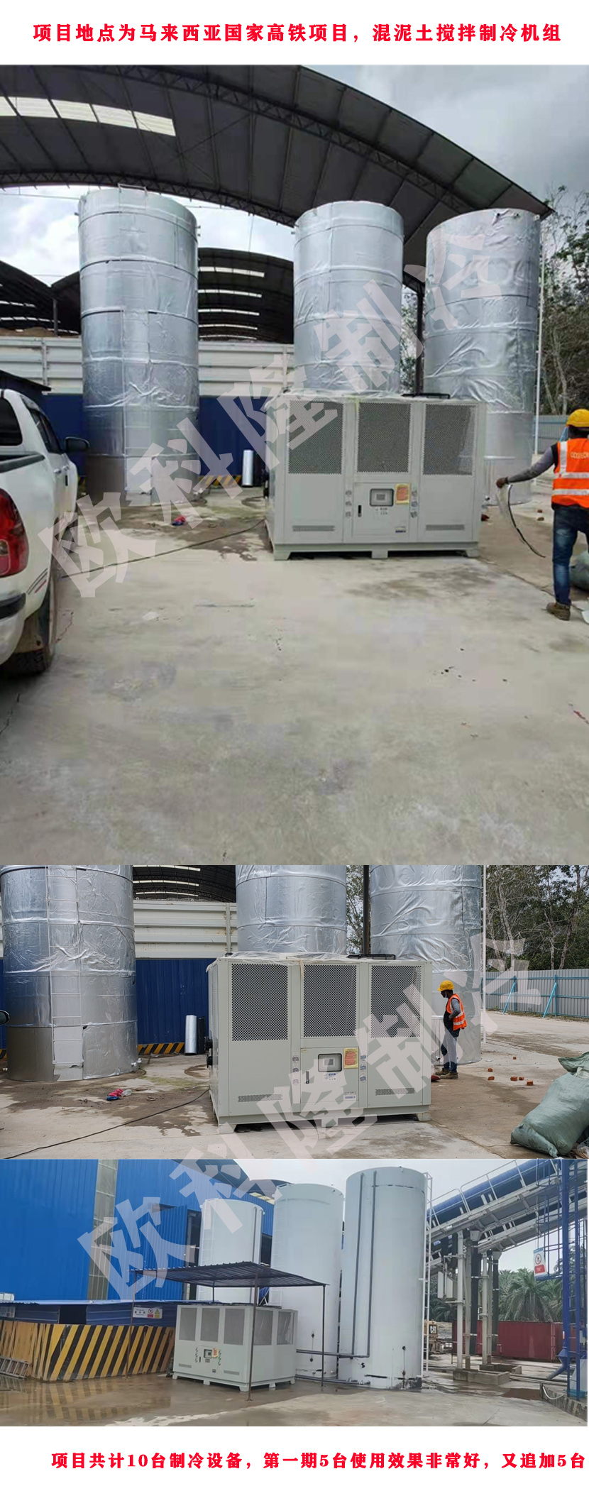 下面的案例是馬來西亞西海岸馬高鐵項目混泥土攪拌專用冷水機組項目。據了解該項目為中國交建集團承接,項目品質要求極高,